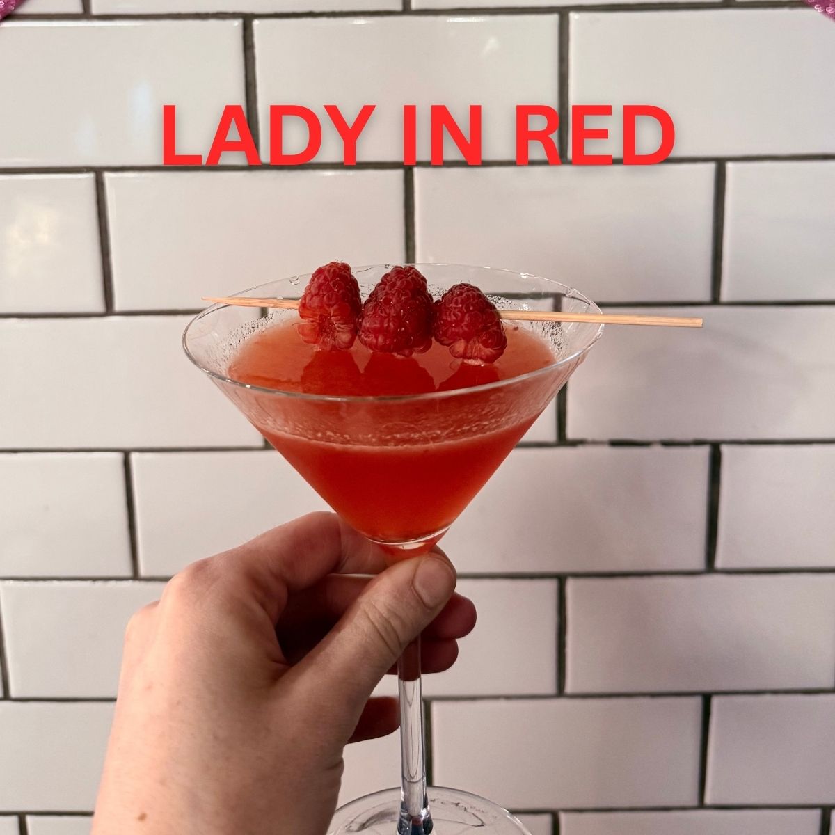 LADY IN RED: Gin, Grenadine, Raspberries, Grand Mariner, Lime